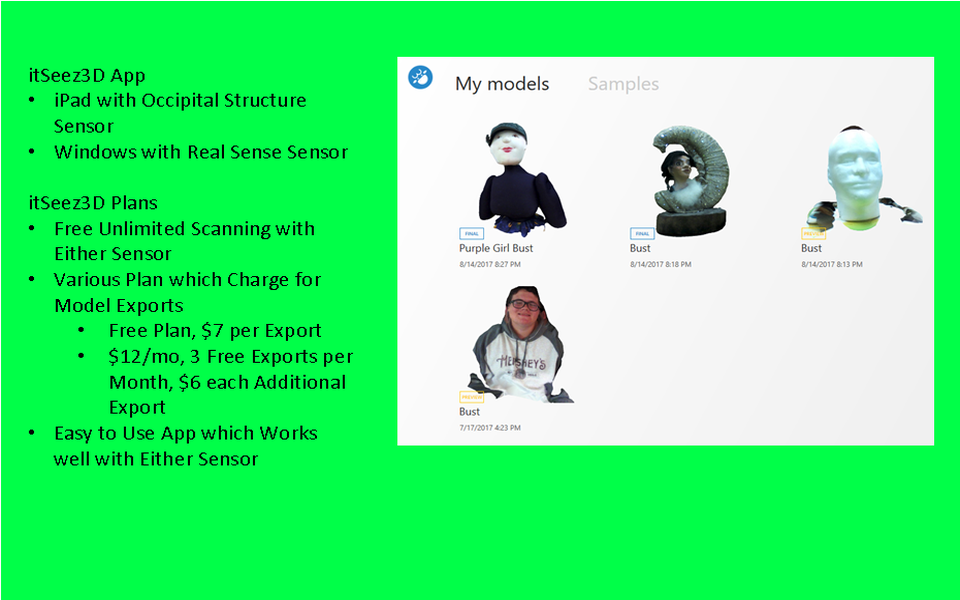 Software - itSeez3d (Structure Sensor or RealSense)